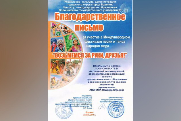 Вокальный ансамбль «LOS CONTANTES» Воронежского института высоких технологий принял участие в фестивале, ведь он является символом уважения, доброжелательности и интереса к культуре и обычаям различных народов.