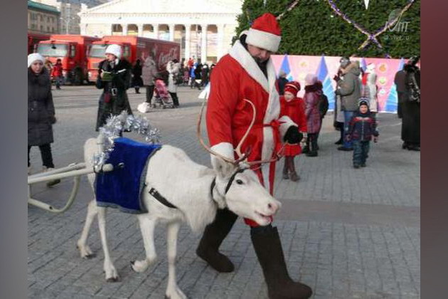 25 декабря 2011г. в Воронеже состоялся III ежегодный парад Дедов Морозов. По сравнению с прошлогодним уличным праздником, когда участвовало 425 символов нового года, этот получился более скромным. Со сцены призывали водить хороводы и петь песню: «Дед Морозу не страшны тревоги, нам любые дОроги дорОги». Внимание зрителей привлекали нестандартные представители класса новогодних символов, а именно - оригиналы Воронежского Института Высоких Технологий. Повелителем мороза и источником подарков был Романенко Ярослав, а его обворожительной внучкой, уже десятки лет подряд, задающей идеал для детей России - Алтухова Виктория. Корреспонденты канала Рен-ТВ признали костюмы нашей пары самыми яркими – они были сделаны в стиле "рок-н-ролл" и стиляг. После небольшого марша и пары конкурсов Деды Морозы и Снегурочки разошлись, но и здесь пара нашего института выделилась, устроив танцы и игры с детьми, восхищённо наблюдавшими за данным действом. Бесспорно, всех порадовало такое «мирное развлечение», как появление на празднике северных оленей, привезенных из Великого Устюга. Транспортировали северных животных в специальном прицепе, а кормили в пути ягелем. Трехлетняя Снежинка, двухлетний Морозко и четырехлетняя Матрешка катали детишек по периметру площади Ленина в течение трех дней, а потом их увезли на родину.