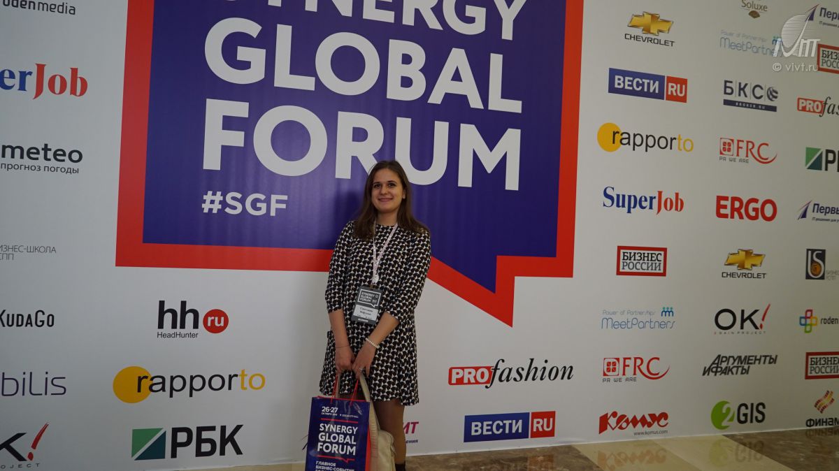С 26 по 27 октября в Москве состоялось уникальное бизнес-событие мирового масштаба «SYNERGY GLOBAL FORUM». В форуме приняла участие студентка 2 курса группы МС-141 Нефедова Светлана, которая не только сумела наладить личные контакты с бизнес- тренерами, но и получила персональное приглашение для участия в следующем форуме, который состоится в апреле следующего года.