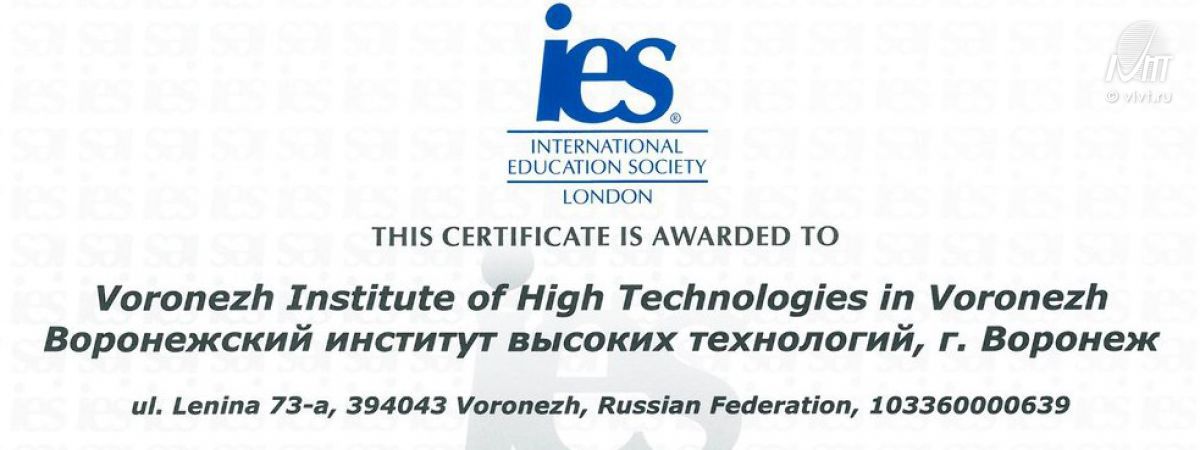 ВИВТ подтвердил международную сертификацию в International Education Society, Ltd., London